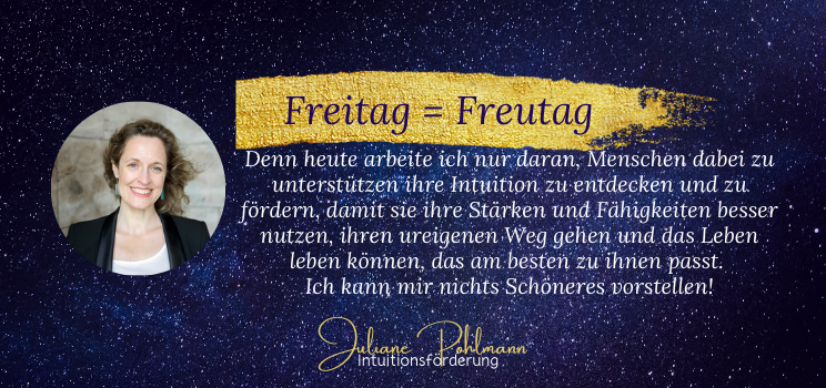 Das Wetter ist trüb und meine Stimmung nach dem Aufwachen auch. Time to count my blessings. Denn heute ist Freitag und Freitag ist Freutag. Warum? Heute arbeite ich nur daran, Menschen bei der Förderung ihrer Intuition zu unterstützen. Willst Du mich begleiten durch meinen Tag, der dann nicht nur dadurch zum Freutag wurde, weil ich genau das tun konnte, sondern weil ich mir wunderbare Dinge und Verbindungen zu besonderen Themen, Menschen und Dingen bewusst gemacht habe? Dann schau was das für ein Tag war :).